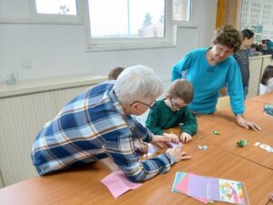 Pour la 2e année consécutive, un atelier créatif intergénérationnel a été organisé mercredi 18 février à la salle des associations de Saint-Maurice-des-Lions, sur la base du volontariat, pour des enfants du RPI Saint-Maurice-des-Lions – Chabrac. Ils étaient une dizaine, garçons et filles, à avoir répondu à l’invitation lancée par l’Association de parents d’élèves (APE) que préside Alexandra Bonneterre.