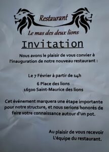 Ouverture du Mas Des Deux Lions samedi 7 février à partir de 14h