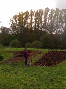 Cela aura pour objectif de donner du relief au jardin-forêt, d’apporter de l’ombre aux exploitants et aux visiteurs, de conserver de l’humidité ainsi que d’engendrer une ombre portée pour une implantation potentielle de plantes sciaphiles comestibles (qui aiment l’ombre : ex. Hostas, Mertensia, légumes perpétuels).